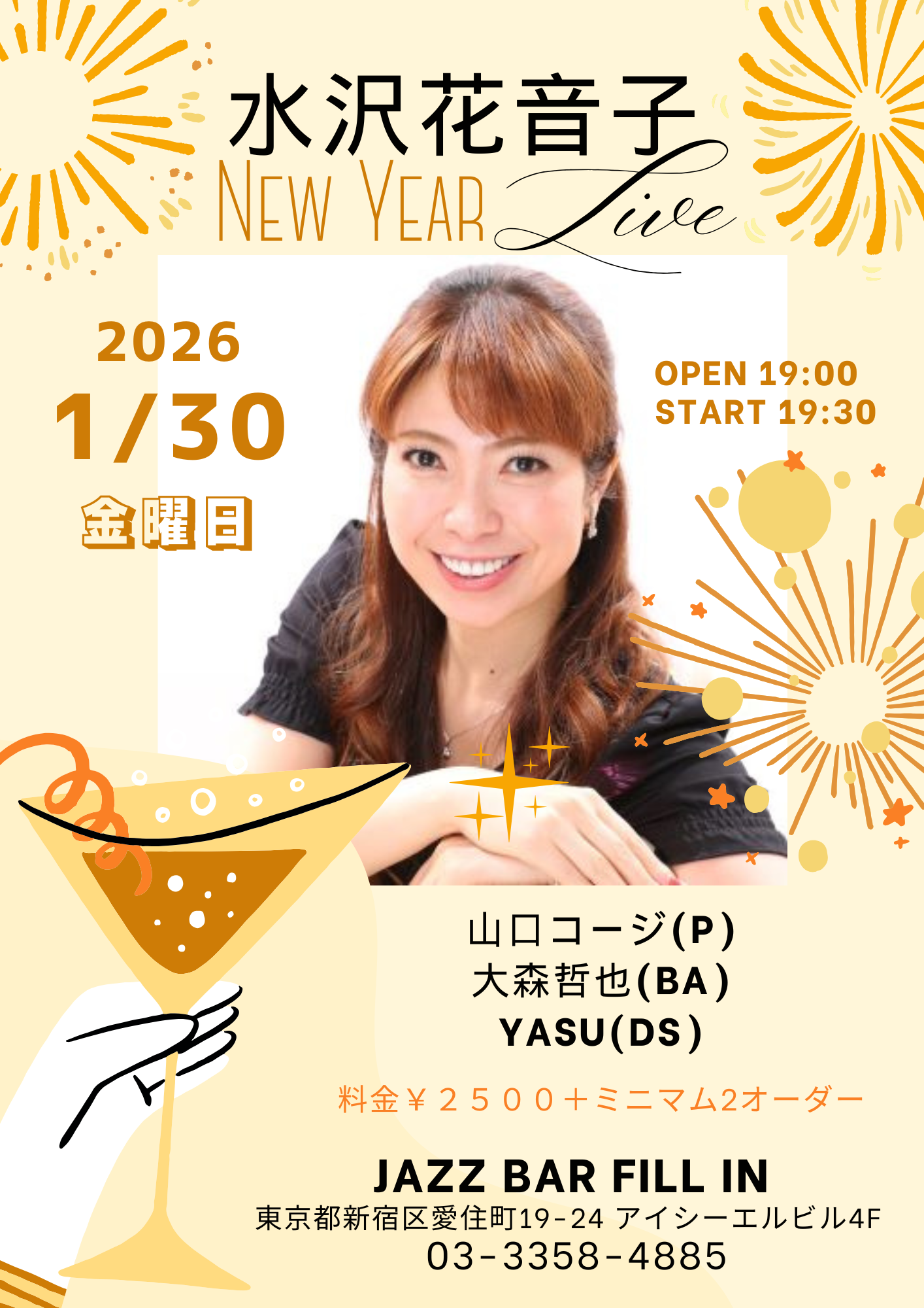Music Charge:2,500円(ミニマム2オーダー別途)