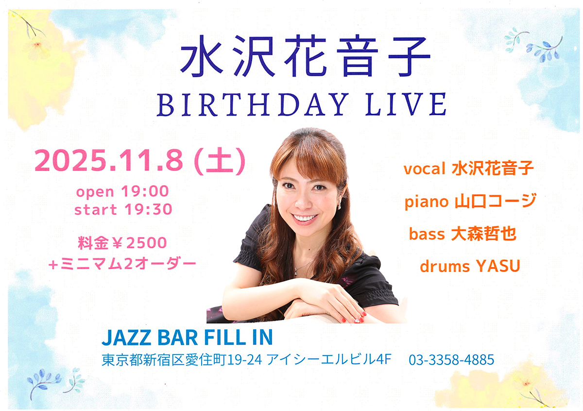 来月は11/8(土)にFill Inでバースデーライブをさせていただきます🎤🎂💕